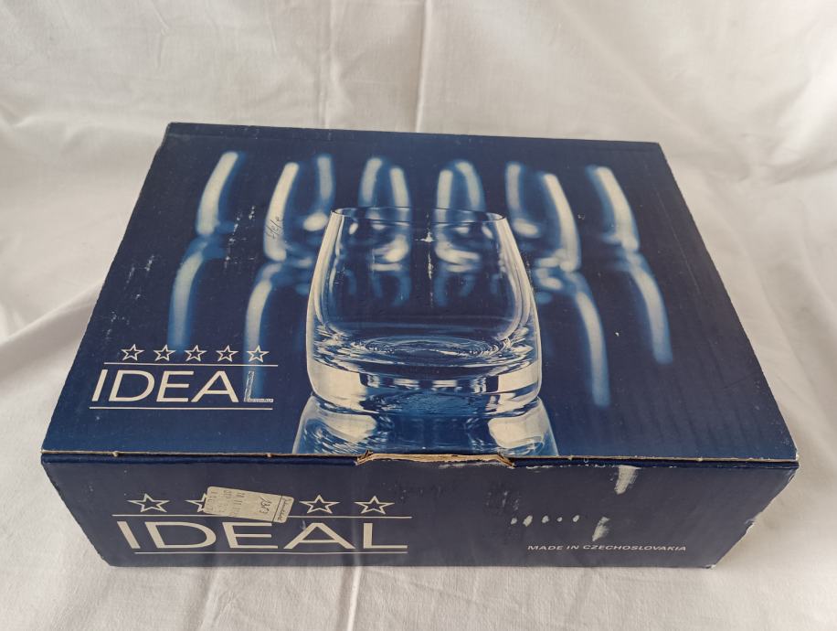 Prodajem set od šest potpuno novih, nekorištenih čaša marke Bohemia Ideal, zapakiranih u originalnoj kutiji. Proizvedene su u Čehoslovačkoj. Prikladne su za viski, liker ili druge napitke.