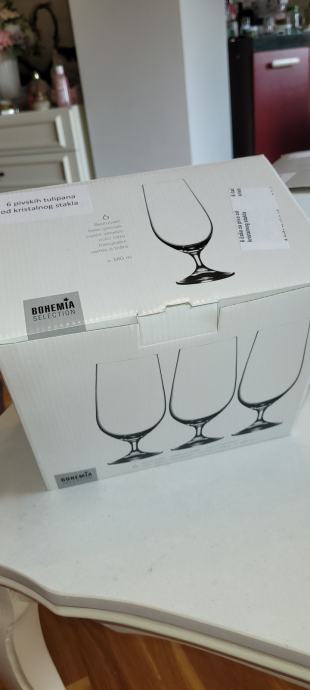Nove, Bohemian čaše predivne na stalku, piše za pivu ali meni je ovo sok definitivno...nove u kutiji. Dvije kutije po 6 čaša, sveukupno 12 čaša.