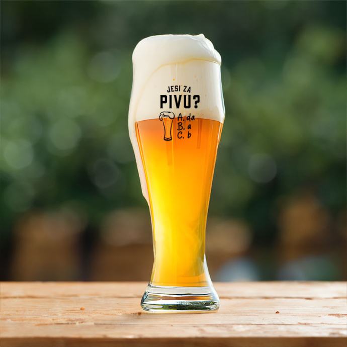 Dizajn: Visoka čaša s tiskom i šaljivim natpisom "Jesi za pivu?"