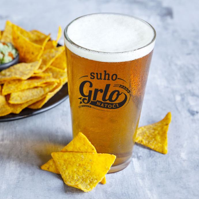 Čaša za pivo s natpisom "Suho grlo natoči" dolazi u poklon kutiji.