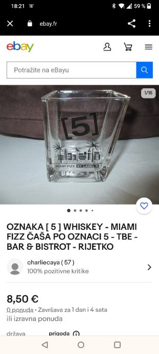 Čaša za viski, visina 8 cm. širina 6 cm., cijena 2 eura.