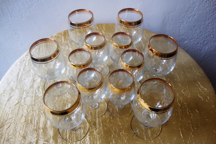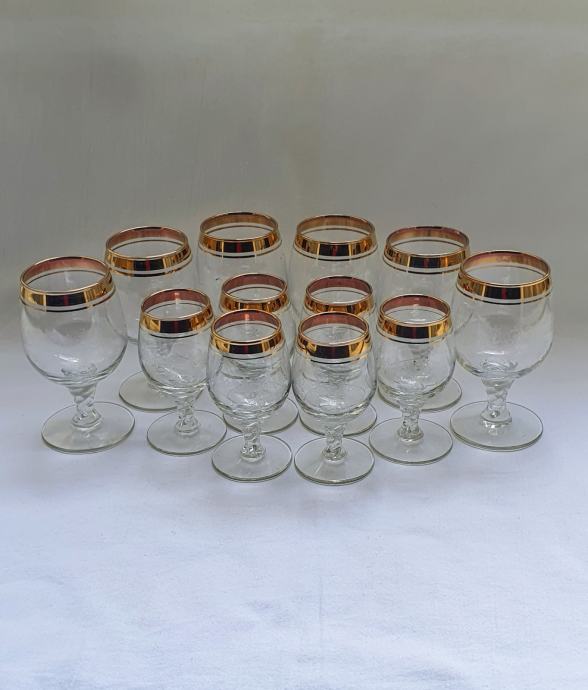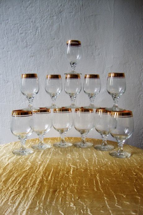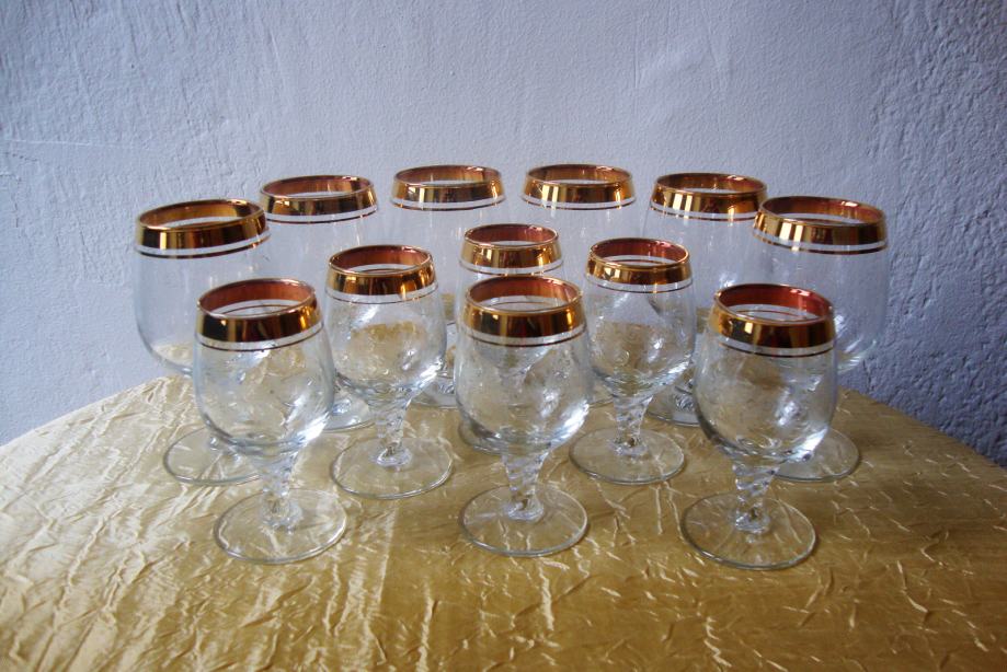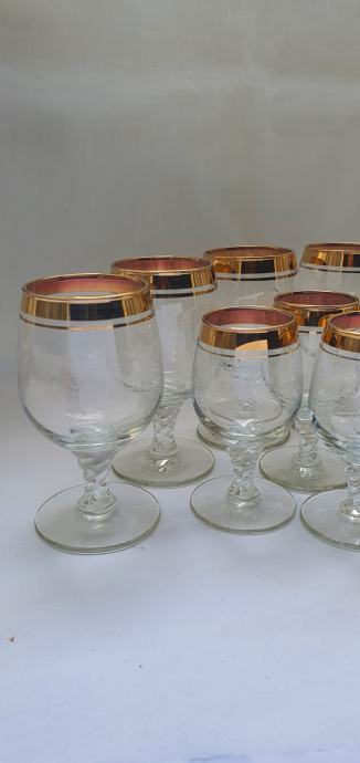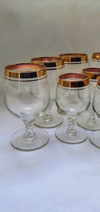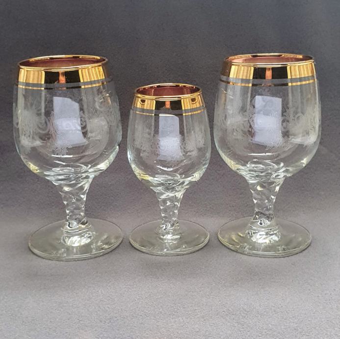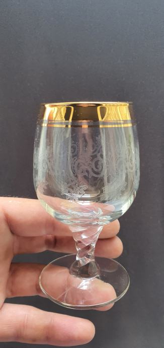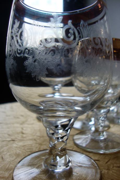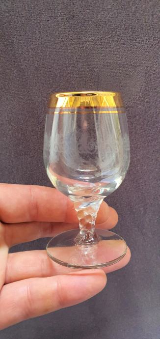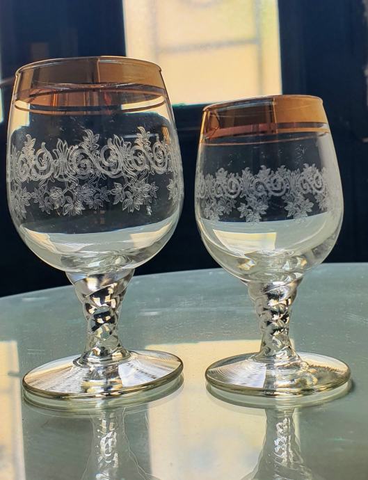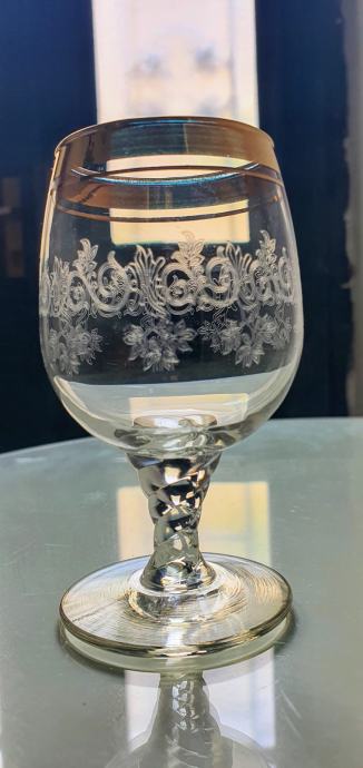 Vintahe aperitivne čaše na stalku ručno gravirane secesijskim uzorkom rub sa pozlatom ne koristeno