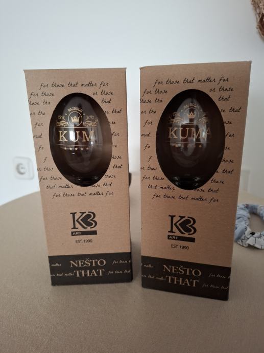 2 neotvorene čaše za kuma i kumu na stalku.