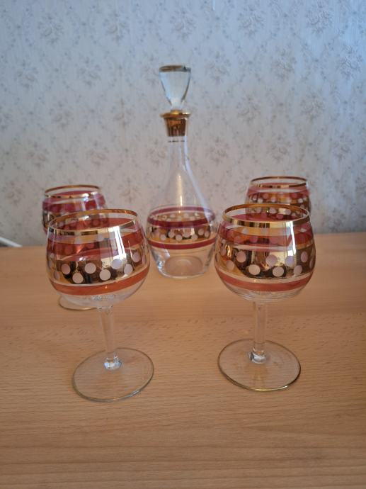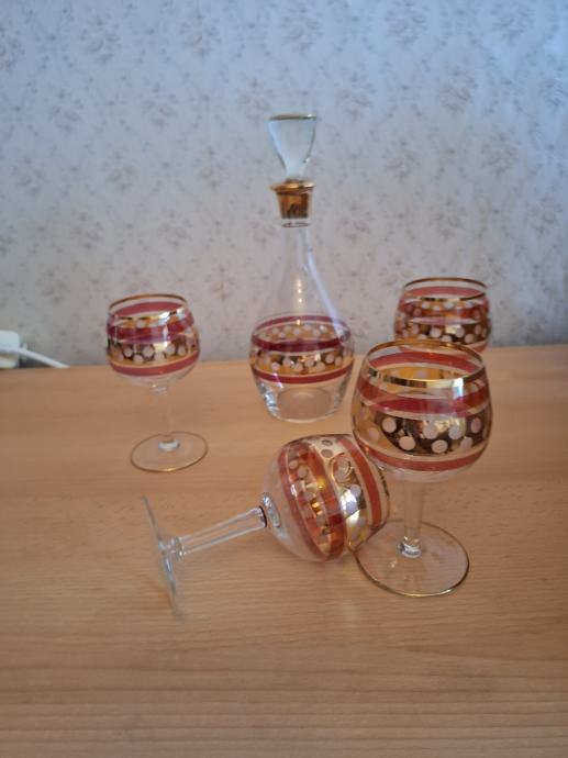 Starinske čaše s dekanterom i staklenom čepom, obojano i korišteno jednom te su se tom prigodom razbile dvije čaše i nakon devet mjeseci rodio se sin. donose sreću, provjereno!