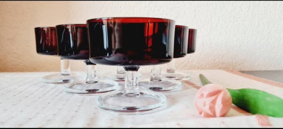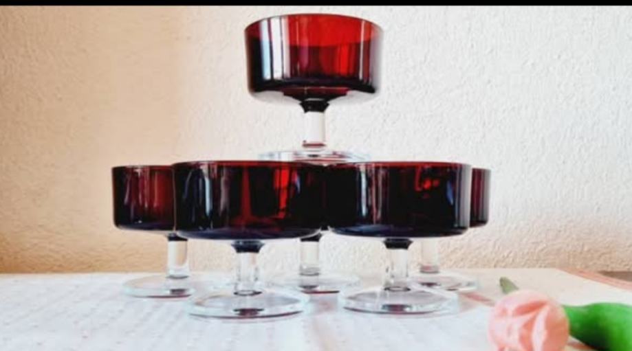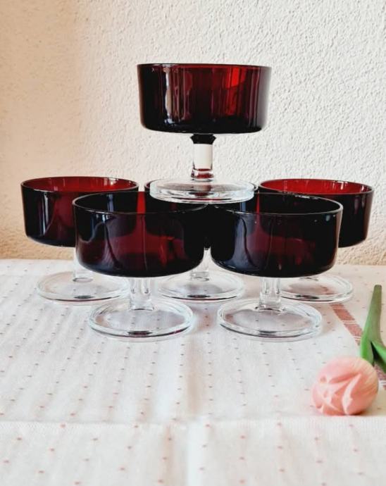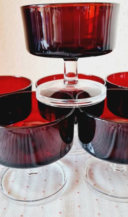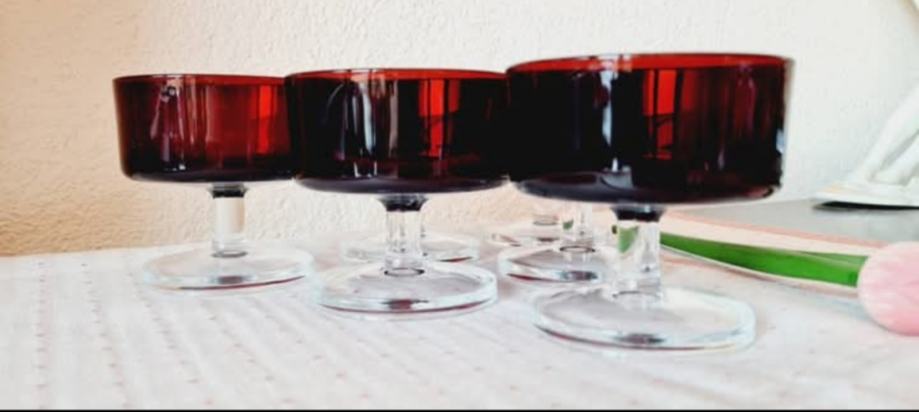 Čaše, Luminarc, Francuska. Iz 70-ih godina prošlog stoljeća. Za aperitiv, ili za sladoled. Prekrasne su. Dvobojne, savršeno očuvane.
