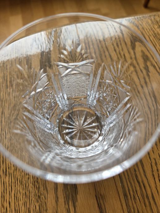 Jako lijepe 4 kom čaša za vodu i vino. Samoborskih kristal s ručnim radom. Posebno lijepog i stabilnog oblika. Rubovi glatka a reljef u obliku zvjezdica. Dim: V=10cm, gornji otvor R=10cm, donji dio=4,5cm.