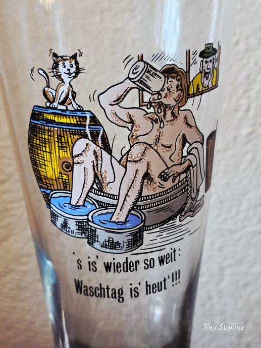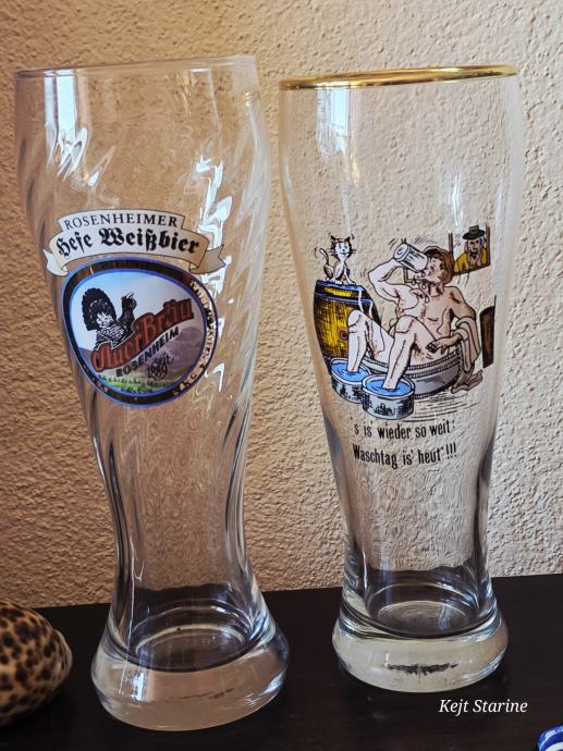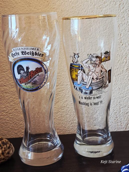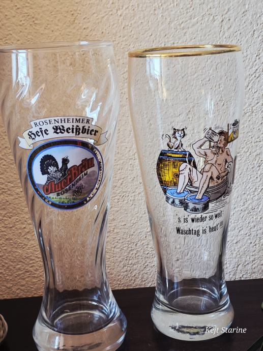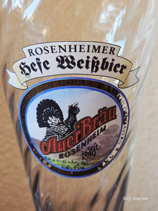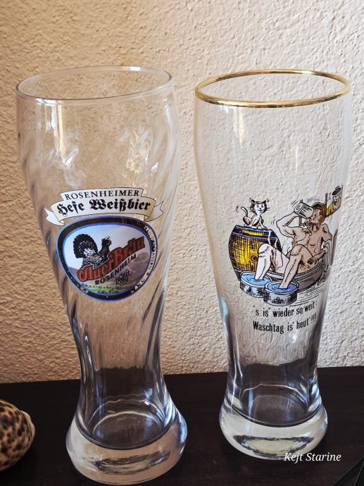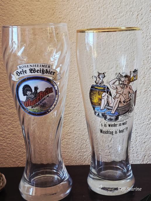 Radi se o visokim, uskim čašama s blagim suženjem pri dnu, tipičnoj za pšenično pivo (Weißbier), a konkretno se spominje "Rosenheimer Hefe Weißbier".