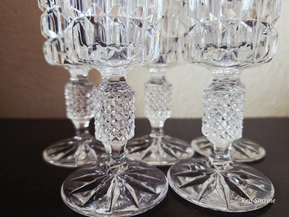 Ovaj elegantni set je vintage proizvod, a predmeti ovog dizajna datiraju otprilike iz 1950-ih do 1970-ih godina. Karakterizira ih prepoznatljiv, gusti dijamantni (ili sličan) rez koji je zahtijevao precizan i vješt rad majstora.