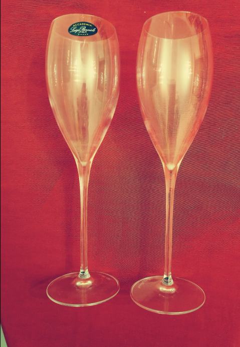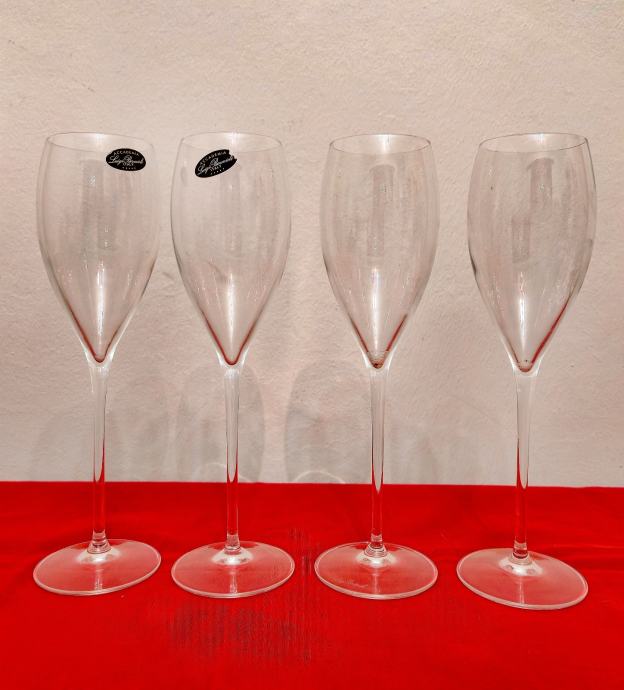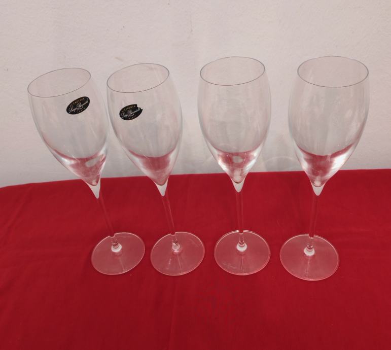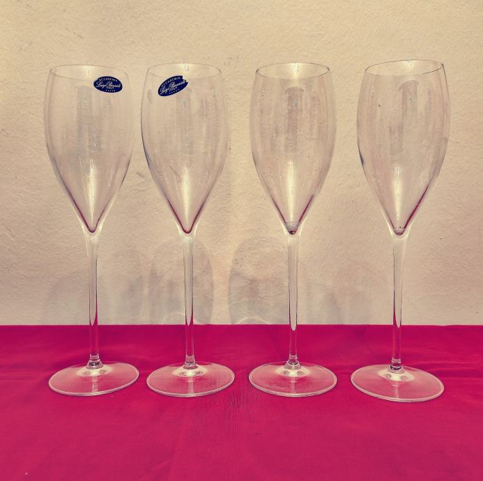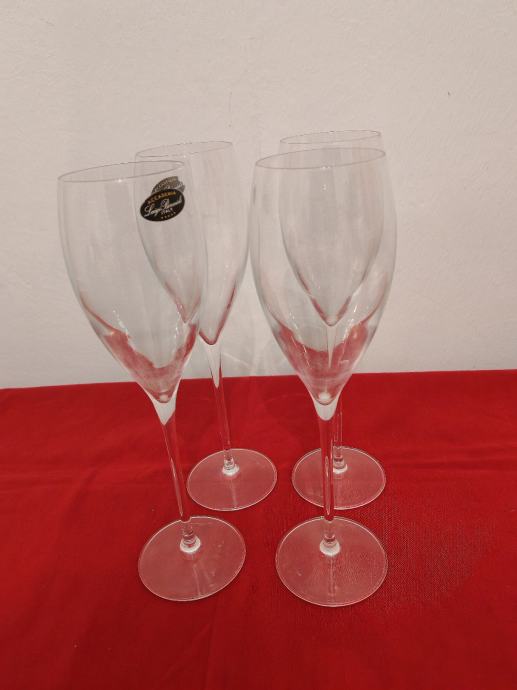 Set od 4 novih čaša za šampanjac od ručno puhanog kristalnog stakla talijanske Accademia Luigi Bormioli.