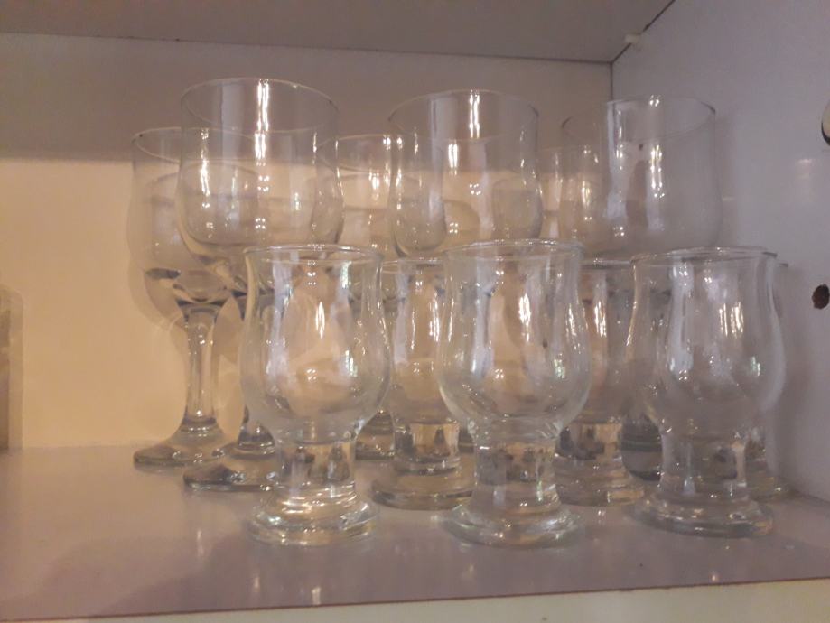 6 velikih i šest manjih čaša, dakle vino i žestica, nove, nikada korištene povoljno, šaljem po dogovoru na teret kupca, moguće i osobno preuzimanje, prvi kontakt isključivo na poziv 091 569 4839