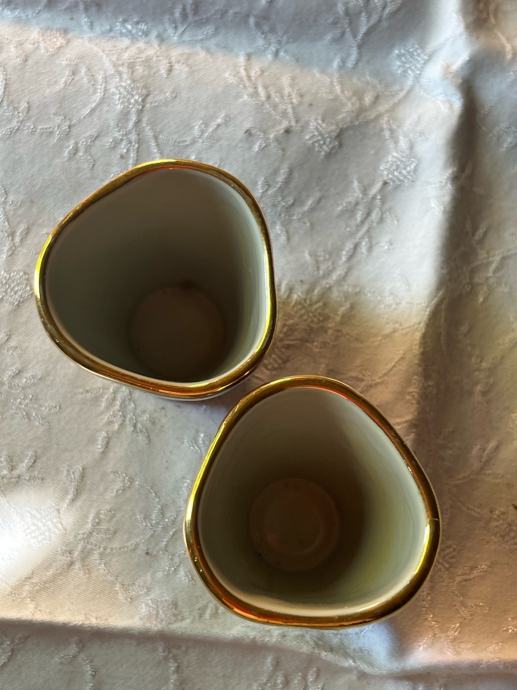 Dvije čaše male (od keramike ? ) sa dekoracijom, obe 4€