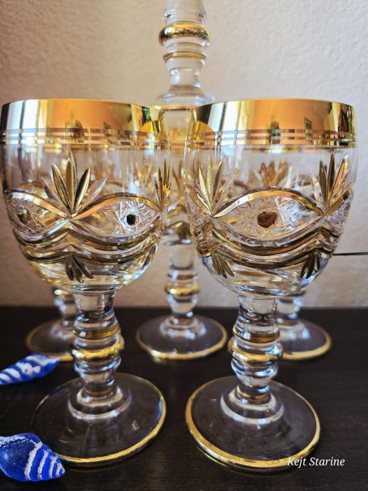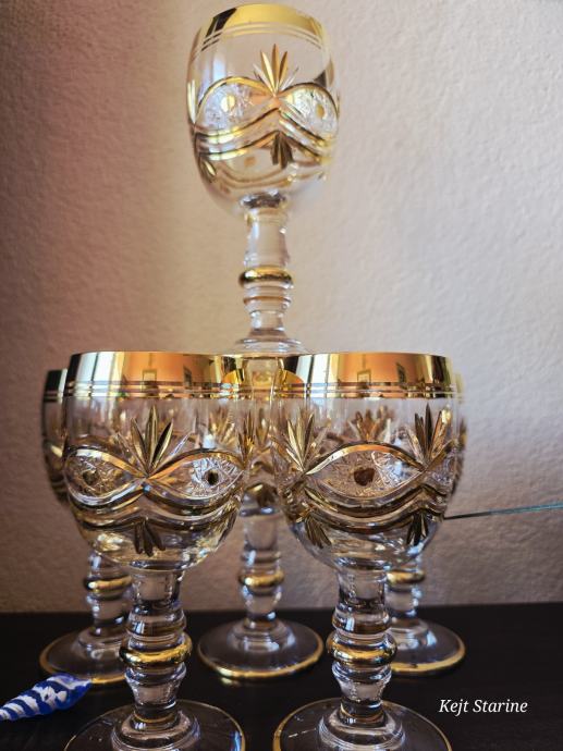 Čaše za vino, 5 je u savršenom stanju, šestoj je pozlata oštećena.
