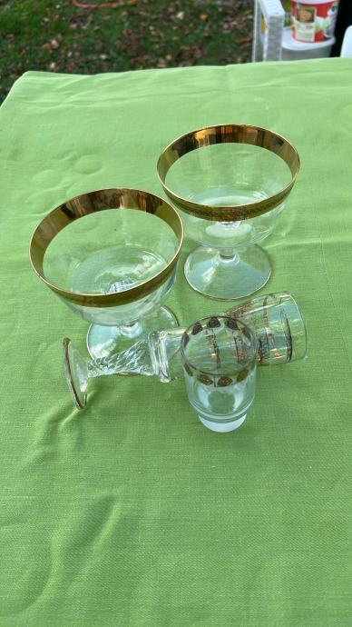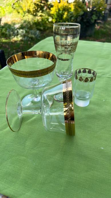 4 čaše vintage s pozlatom
