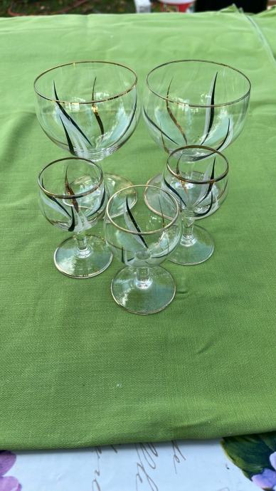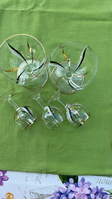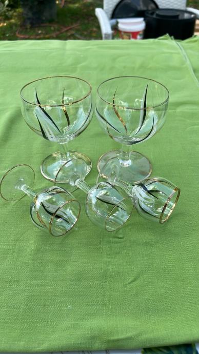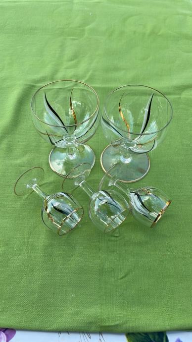 3+2 čaše vintage , sa pozlatom , izuzetno tanke