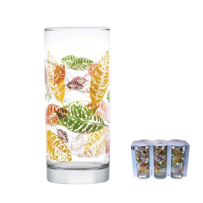 Svaka čaša u ovom kompletu izrađena je od prozirnog stakla i ukrašena uzorkom listova, koji unose dojam svježine i harmonije u svakodnevno posluživanje napitaka.
