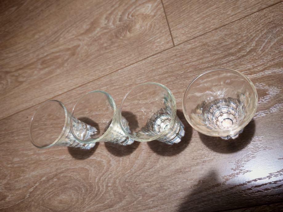 Prodajem 4 staklene čašice za aperitiv, visine 7 cm, u odličnom stanju. Bez oštećenja, pukotina ili zamućenja – uredne i očuvane.