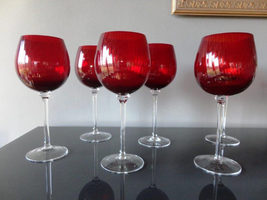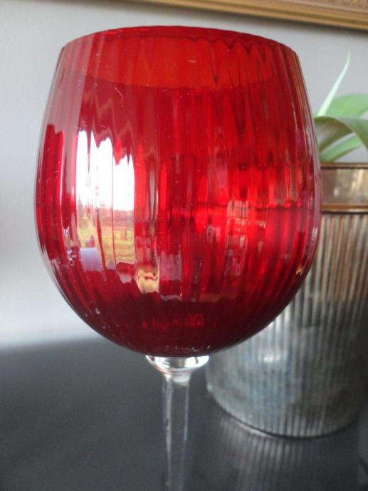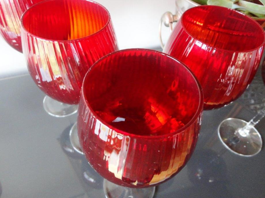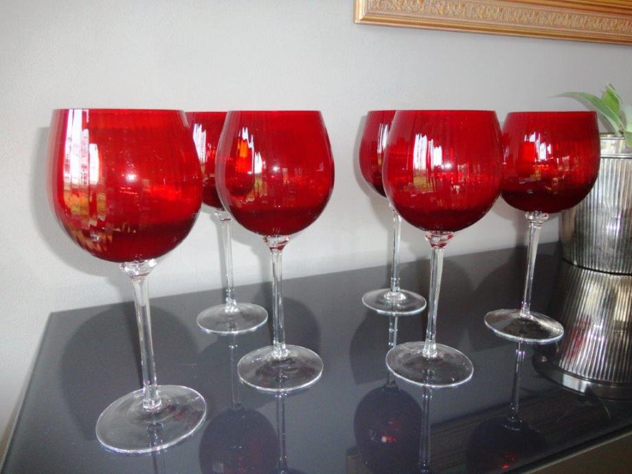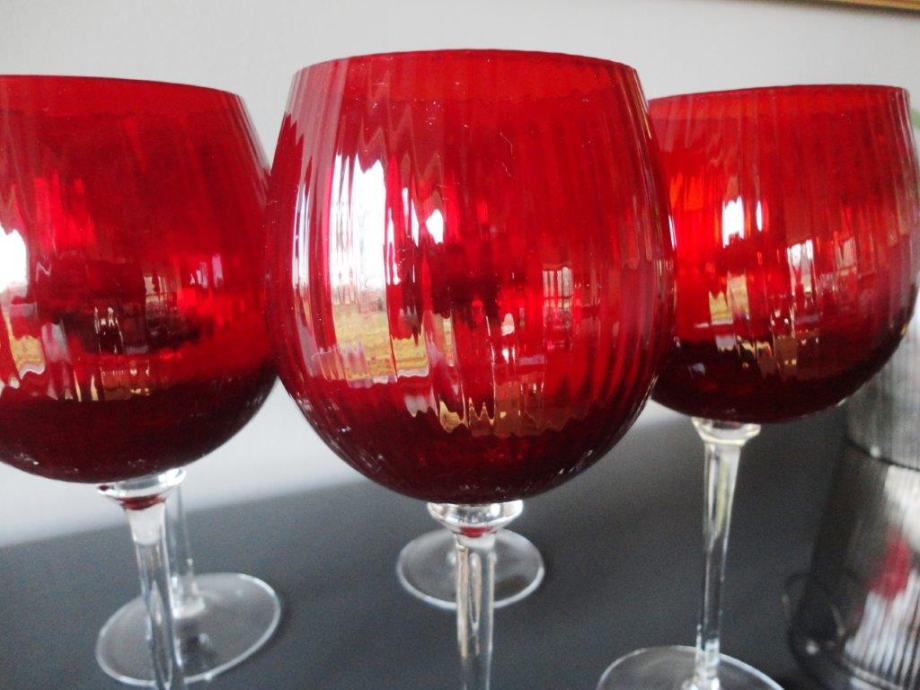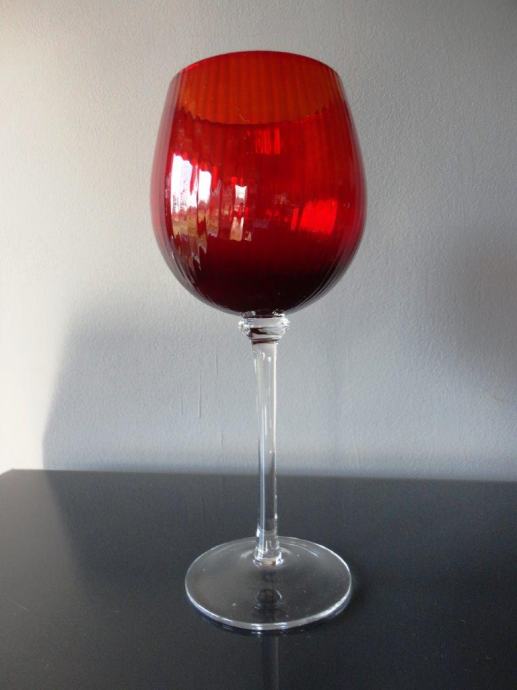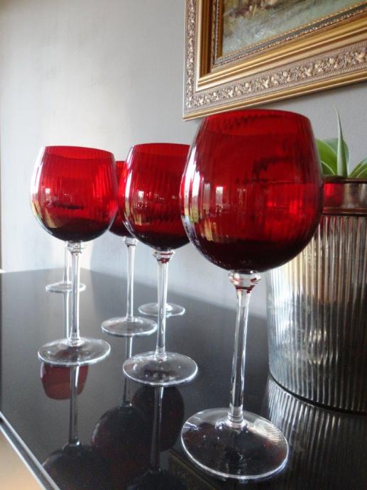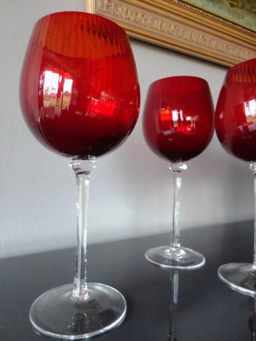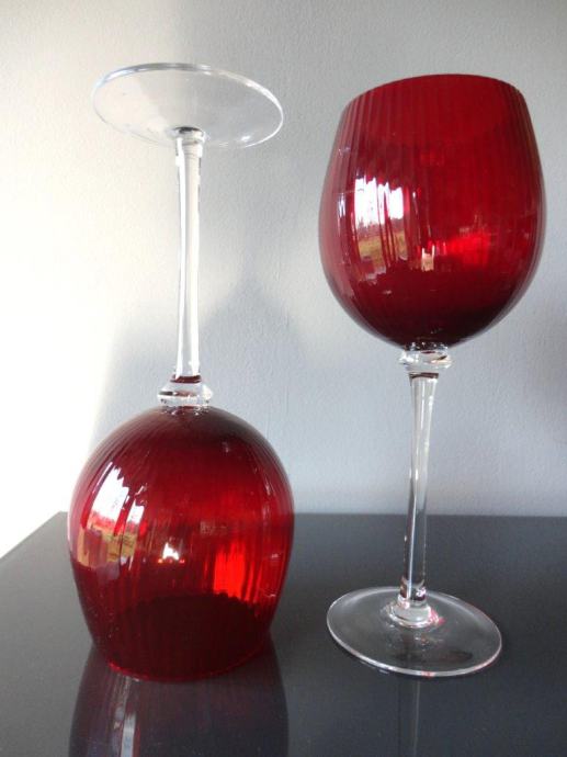 crveno staklo / čaše na visokoj nozi od prozirnog stakla