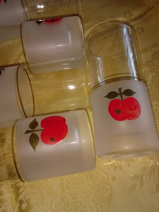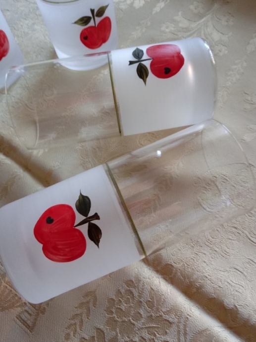 Komplet od 6 čaša ukrsenih motivom jabuke i pjeskarenjem.