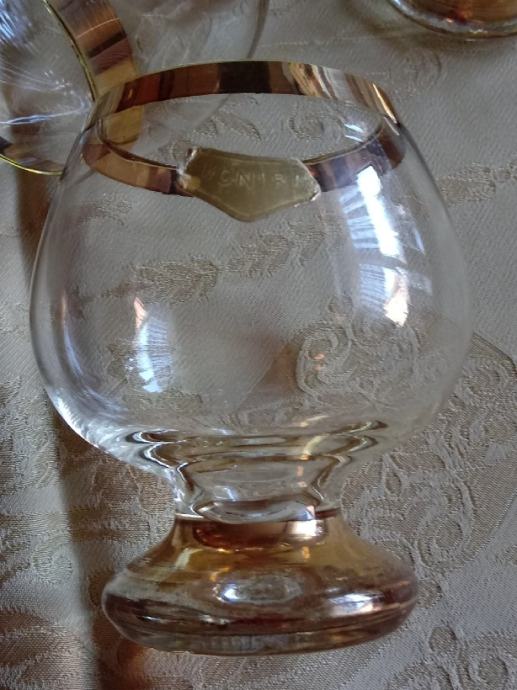 Jedan komplet od 4 case za vinjak rucne izrade sa pozlatom na rubu i nogici.