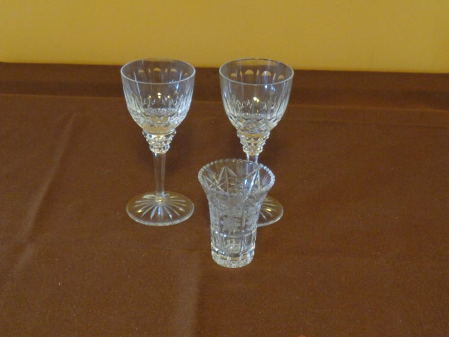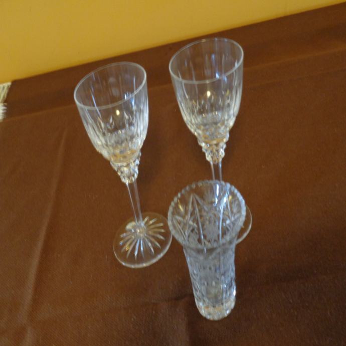 Dvije kristalne "štingl" čaše i kristalna vazica