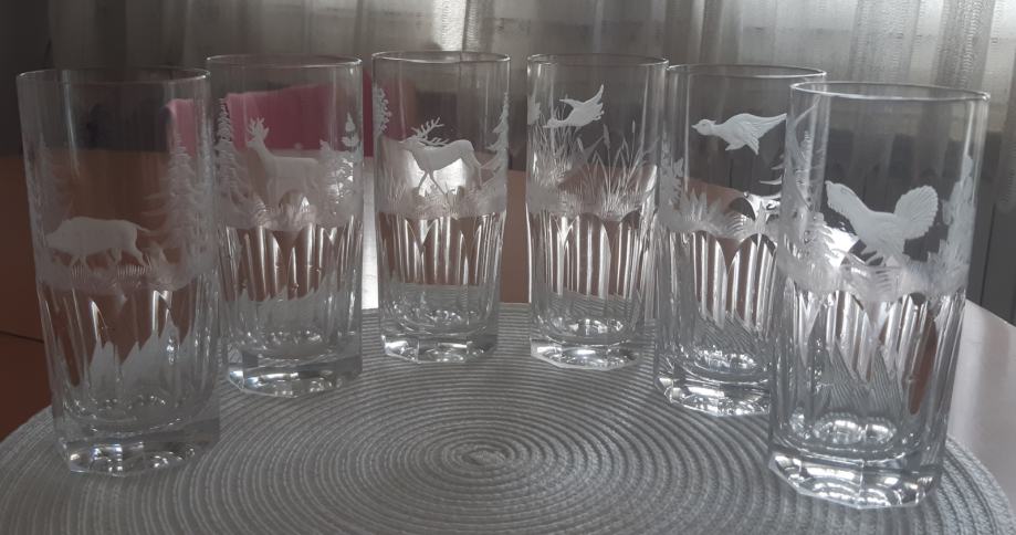 Kristalne čase, svaka sa motivom lovačkih trofeja.