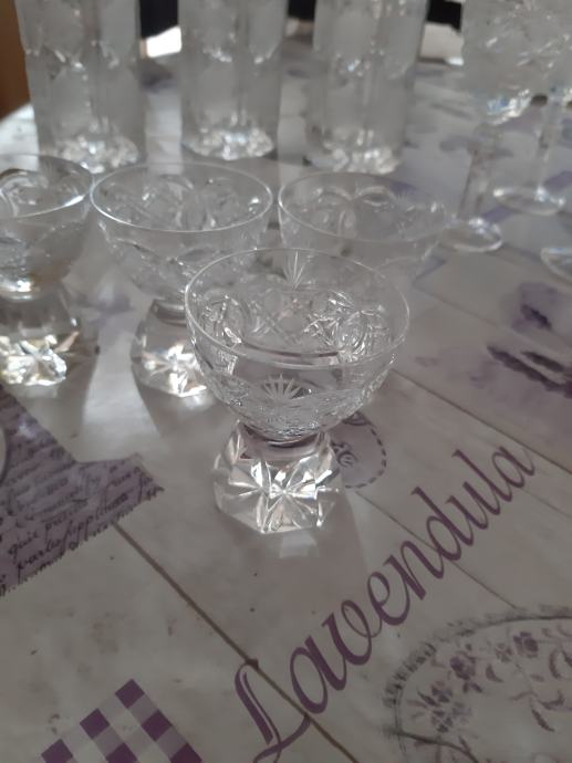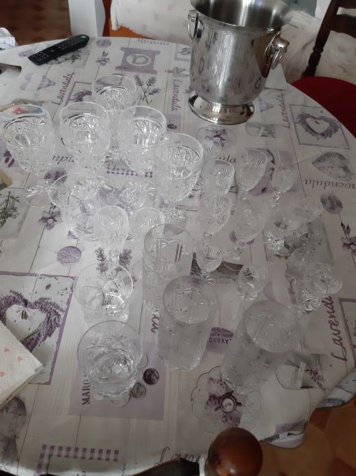 Prodajem 31 komad raznih kristalnih čaša i uz to dajem na poklon 15 ukrasnih čaša +12 za sladoled i zdjelu za led.Sve ovo nikad korišteno stalo u vitrini.Cijena 200 eura sve.