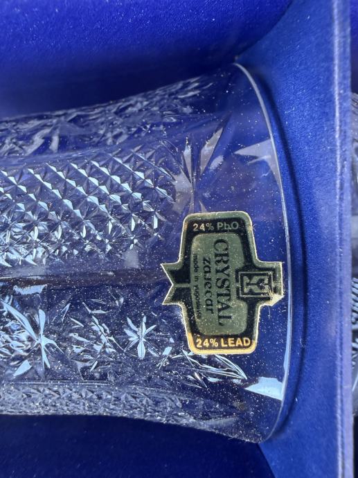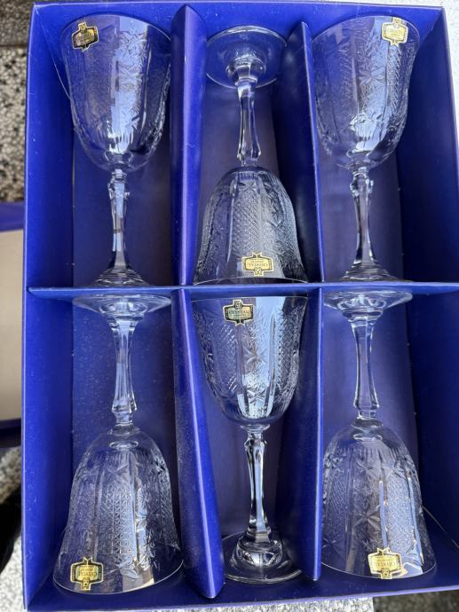 Kristalne čaše za vino u original kutiji, 6 kom, nikad korištene, bez oštećenja, kristal Zaječar, 24% PbO