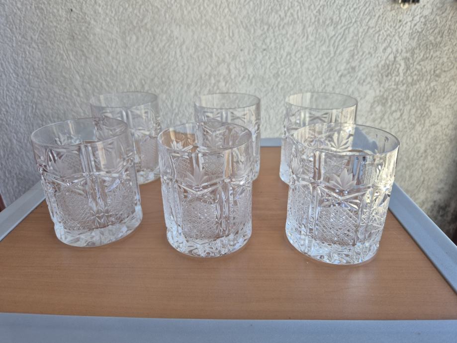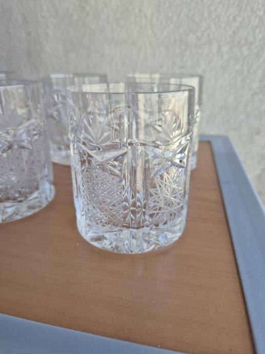 Set id 6 Rogaška kristalnih čaša za whiskey, rabljene, jedna ima oštečenje na rubu vidljivo na zadnjoj slici