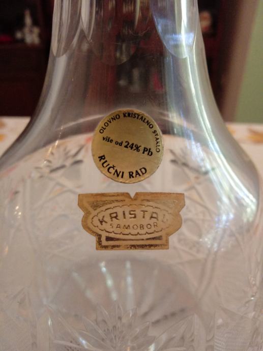 komplet 6 čaša (uslikane su samo dvije, ai ih ima 6), boca za viski i posuda za led. Nekorišteno, sa etiketom Samobor kristal