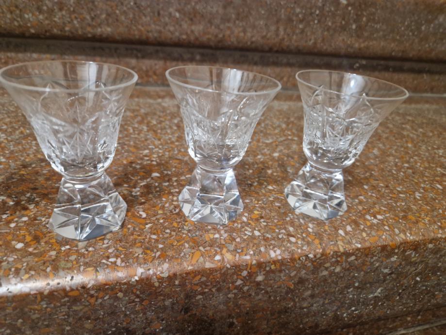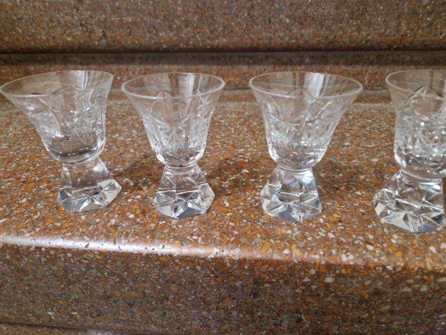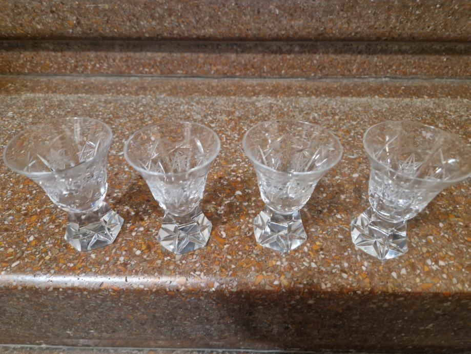 Samoborskih kristal, visina oko 8 cm , otvor oko 5.7 cm, ok stanje, cijena se odnosi na sva 4 komada i fiksna je...poruke na whatsapp