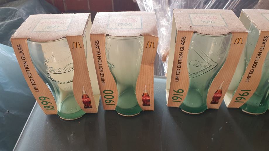 Prodajem 9 Coca-Cola čaša iz McDonaldsa. 6 su iz Limited edition serije, zapakirane su i nekorištene. Moguća prodaja u kompletu ili pojedinačno. Zamjene me ne zanimaju. Cijena za cijeli komplet 250kn.