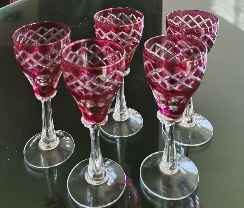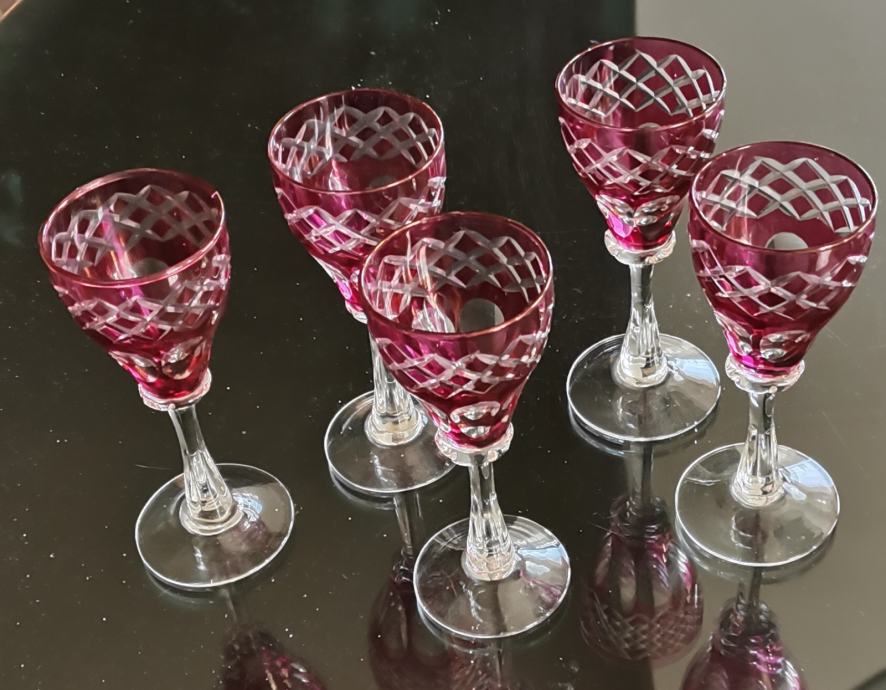 Pet kristalnih Murano čaša za žestoka pića, odlično očuvano