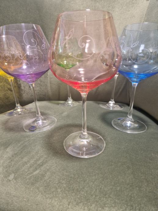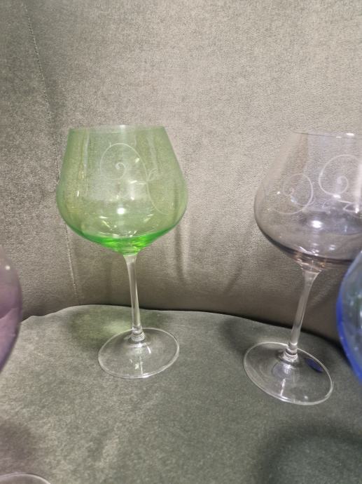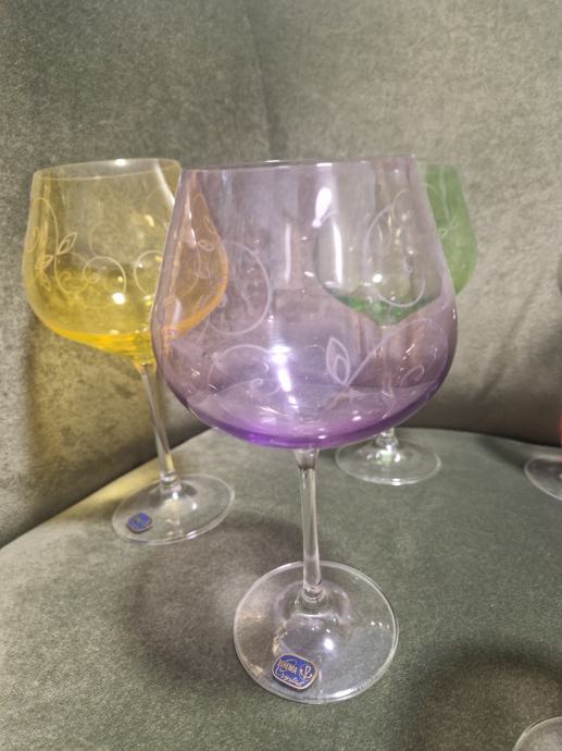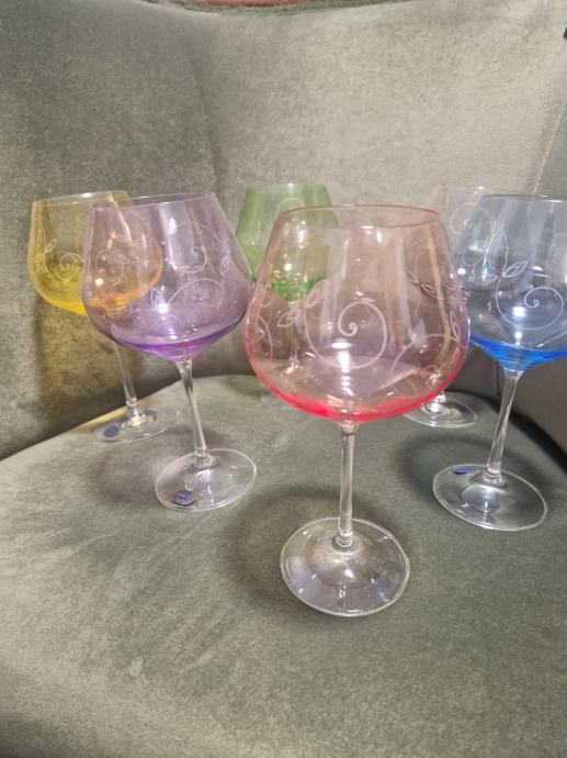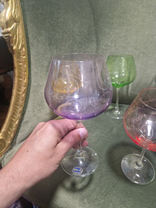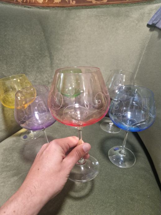 Svih 6 komada u odličnom stanju jer stoje u vitrini. Visina cca 21 cm a promjer otvora 7 cm . Cijena se odnosi na komplet od 6 čaša.