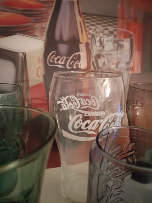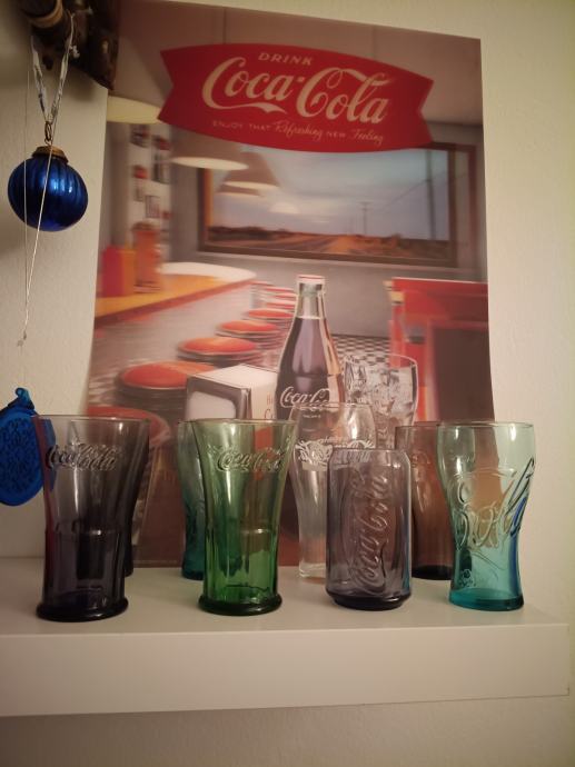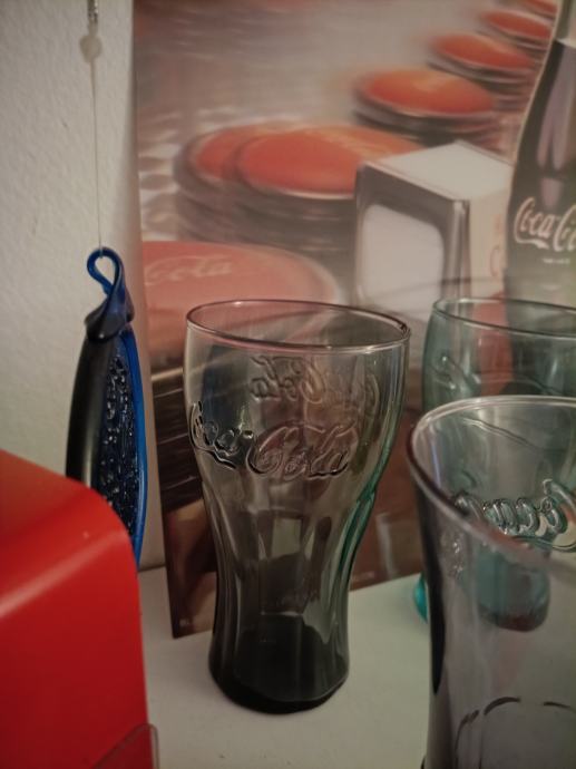 Coca cola držač cjenika i salveta i 8 raznih coca cola čaša .5 eura komad.