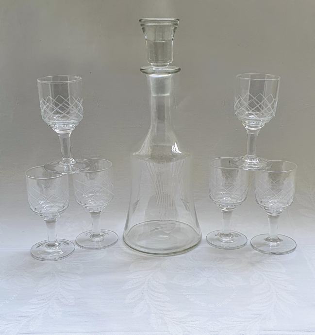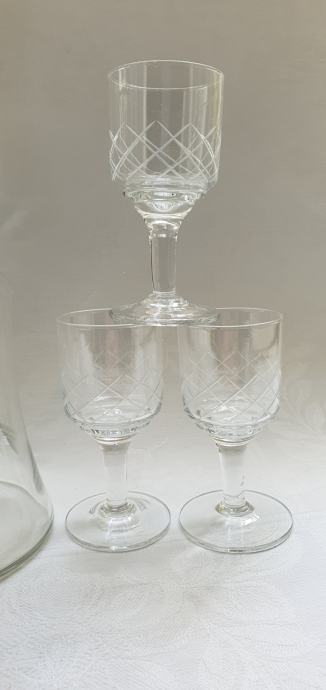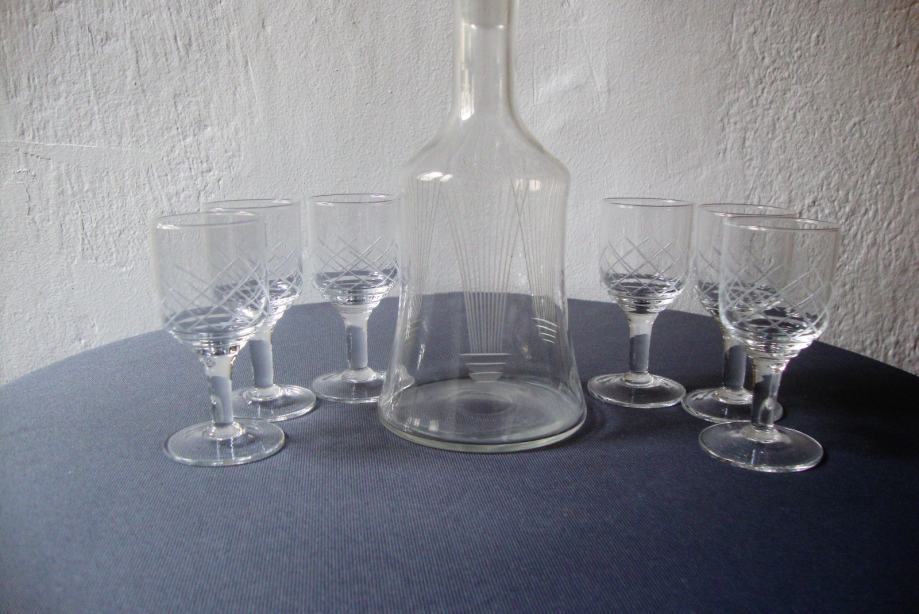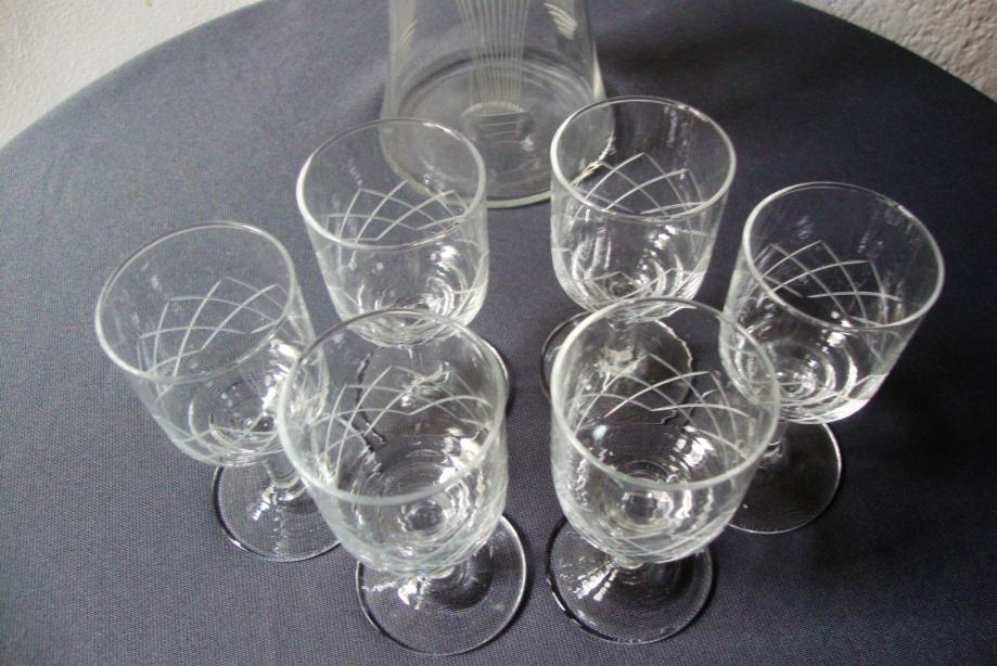 Krasan elegantni servis sa ručno graviranom čašama bocunom je prodan vije na caša je 40 eura