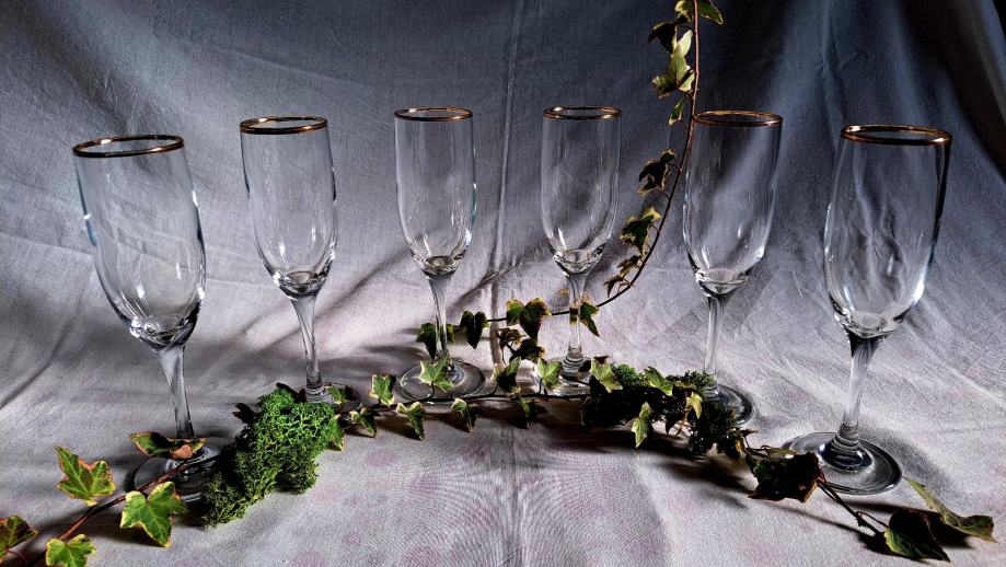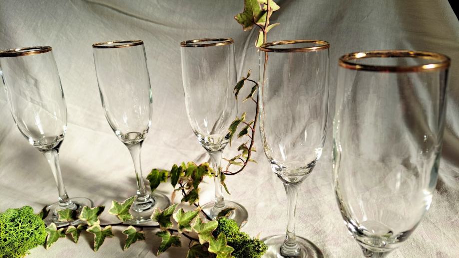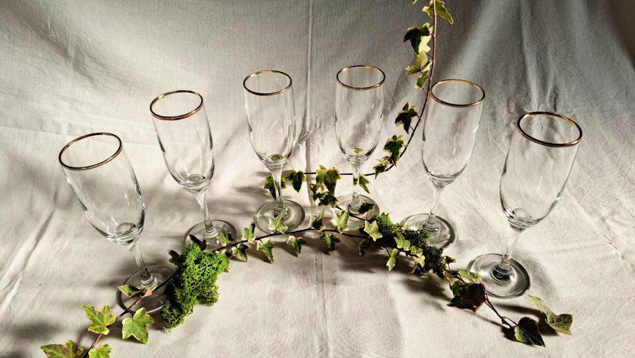 Staklene čaše za šampanjac - pozlaćeni rub (6 kom)