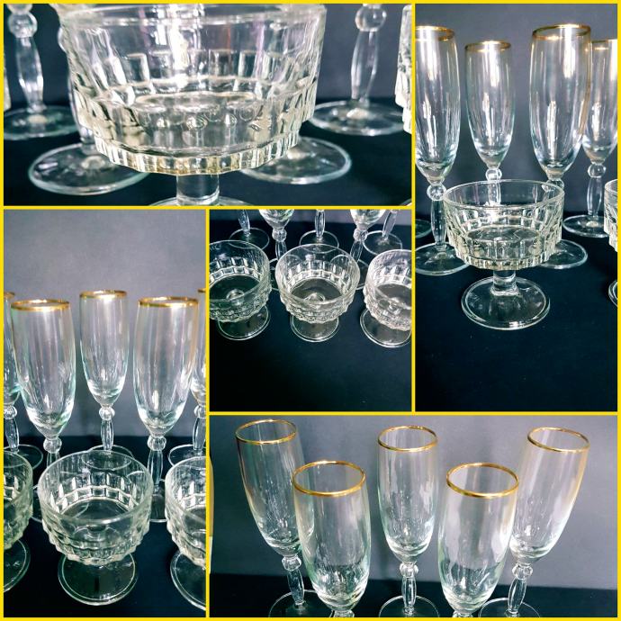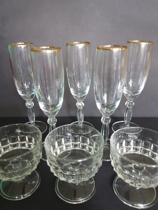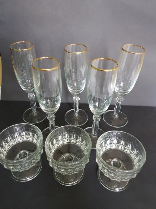 Prekrasan vintage lot od 5 casa za pjenusac sa pozlatom na rubu