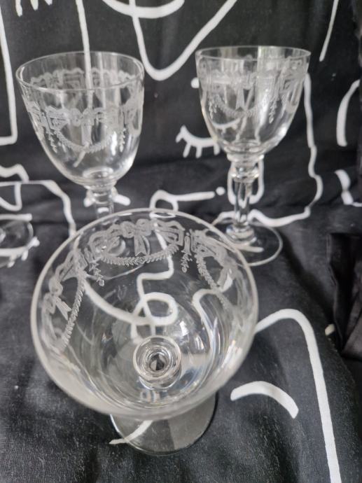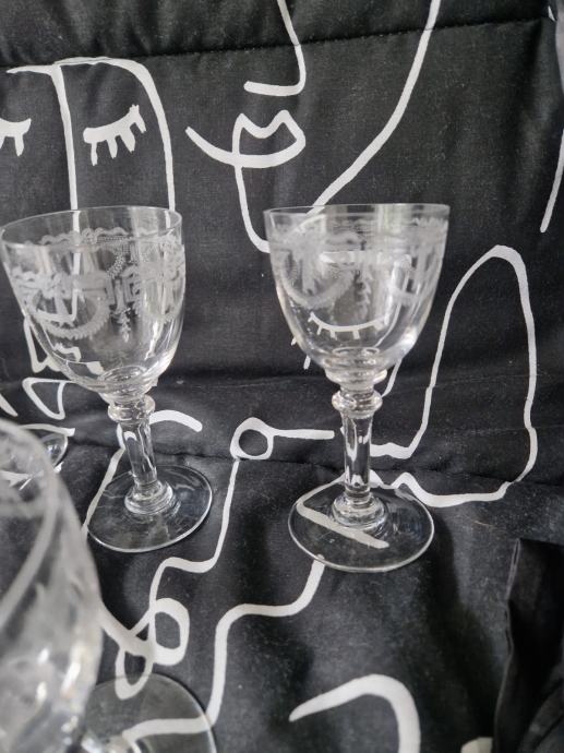 Top gravure ( teško za poslikat radi svjetla), visina oko 11.5 cm a otvor oko 5.5 cm...svih 6 komada u odličnom stanju i cijena se odnosi na cijeli komplet...poruke na whatsapp