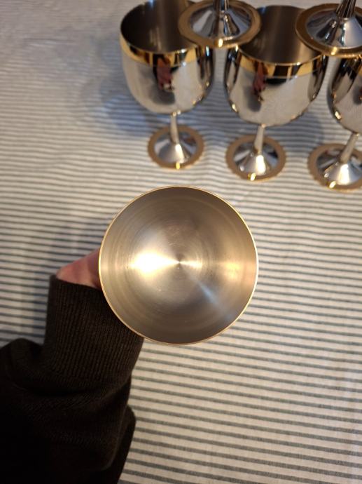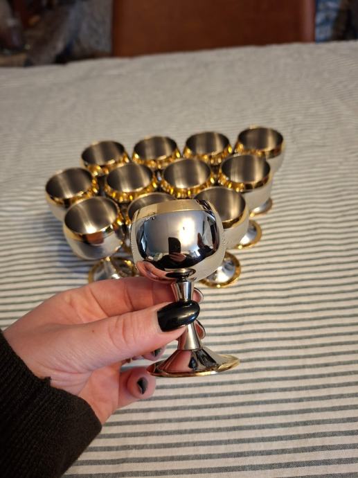 Prodajem set Zepter čaša od nehrđajućeg čelika s karakterističnim zlatnim rubom. Set se sastoji od 12 čaša za od 33ml