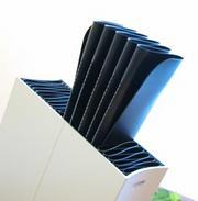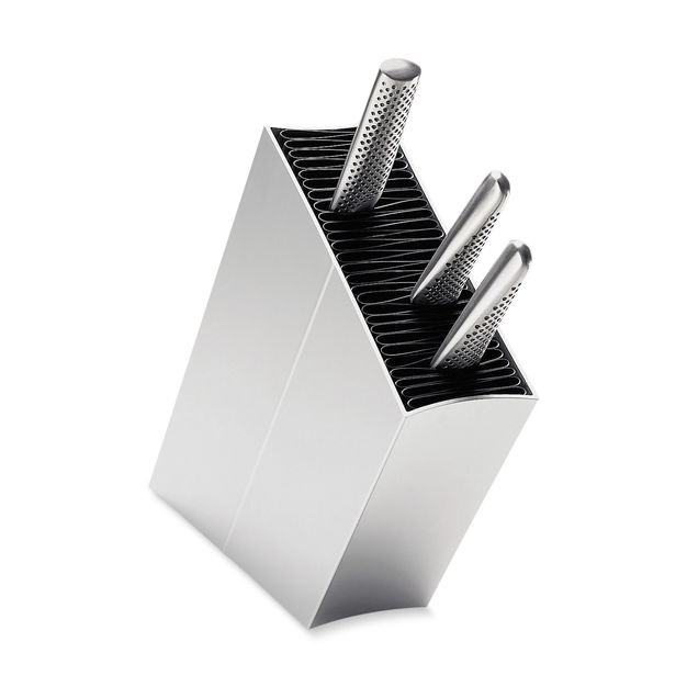 The simple, contemporary Angled Knife Stand has an innovative accordion-fold insert that holds and protects knives and is removable for easy cleaning. The Angled Knife Stand reflects the Museum's storied history of documenting and displaying examples of Danish design. Angled for easy access, the Angled Knife Stand stores up to 15 knives.
