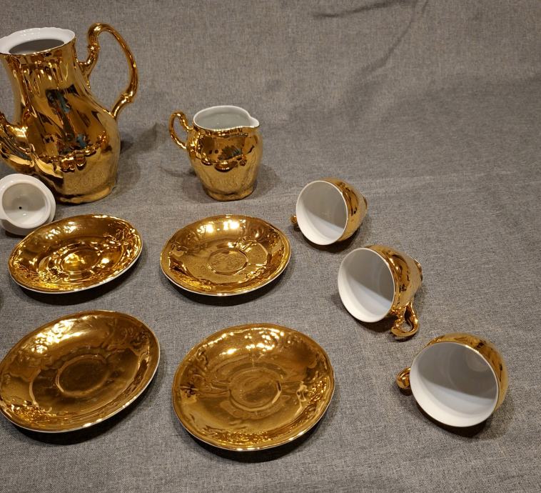 Bernadotte luksuzni vintage set za kavu – zlatni reljefni porculan, ko