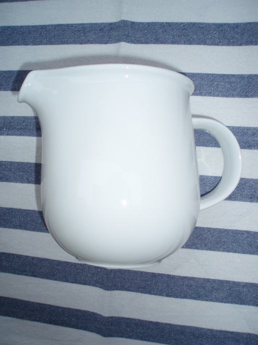 bijeli porculanski vrč zapremnine 1 litra, stane do vrha još 2,5 dcl, čuvene Njemačke tvrtke Arzberg.