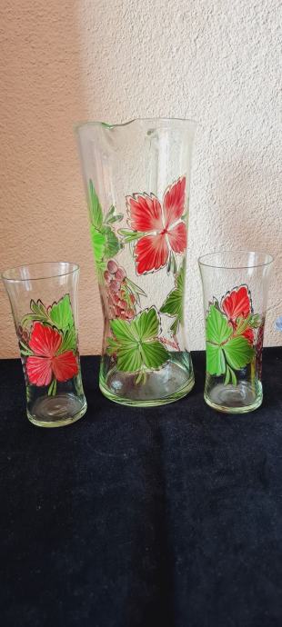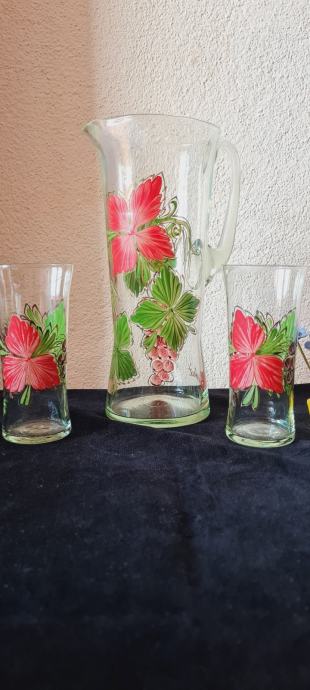 Bokal i dvije čaše, ručni rad. Iz 80-ih godina prošlog stoljeća. U savršenom stanju.