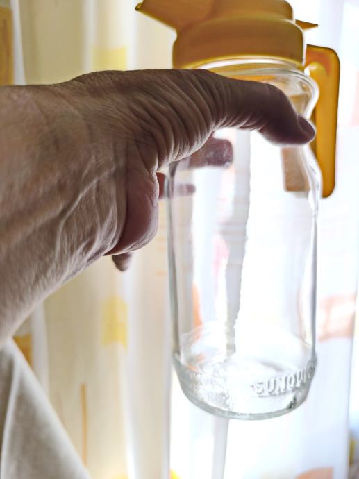 Bokal je kvalitetan. Pritiskom na gornji dozator tekućina se izljeva.