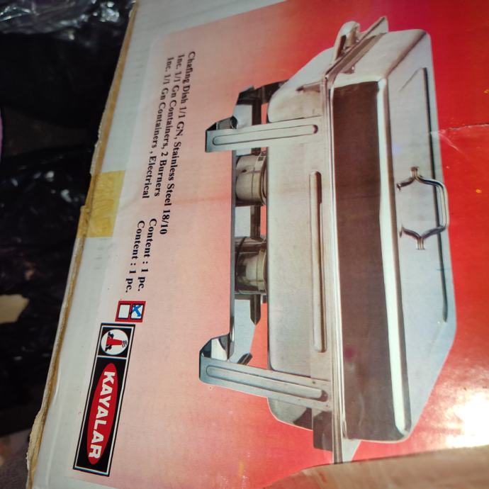 Novo, profesionalno, nije Pevec i Baumax, teško, cijena je za 1 komad, Shafing Dish, Kavalar, Slovenija, profesionalni, od nehrdjajućeg čelika, velike zapremnine mislim barem 9l, svaki sa 2 grijača, napunjena gelom za grijanje koji nije jeftin, posuda sa dvije prekrasne drške, poklopac sa drškom odozgo i podloga, za kupovinu oba, popust je 10 Eura.