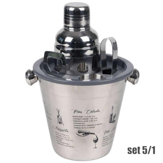 Svi dijelovi seta su izrađeni od visokokvalitetnog nehrđajućeg čelika i imaju srebrnu boju što im daje elegantan izgled. Set je dizajniran za jednostavnu i učinkovitu pripremu različitih koktela kod kuće ili u barovima.