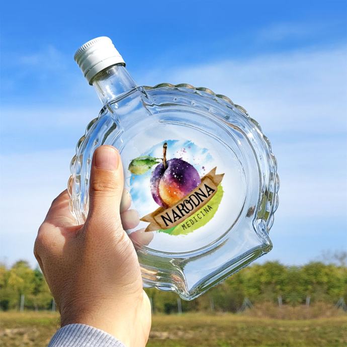 Čuturica boca s natpisom "Narodna medicina" i slikom šljive je prekrasan i funkcionalan predmet koji će biti idealan za sve one koji cijene tradicionalne i prirodne "načine liječenja" te istovremeno uživaju u konzumiranju kvalitetnih rakija i likera.