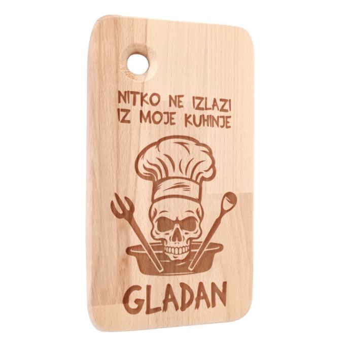 DASKA DRVENA GRAVIRANA Nitko ne izlazi iz moje kuhinje gladan 27x15 cm