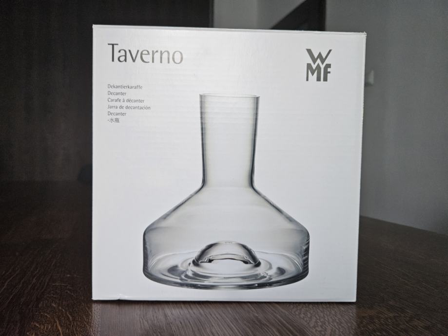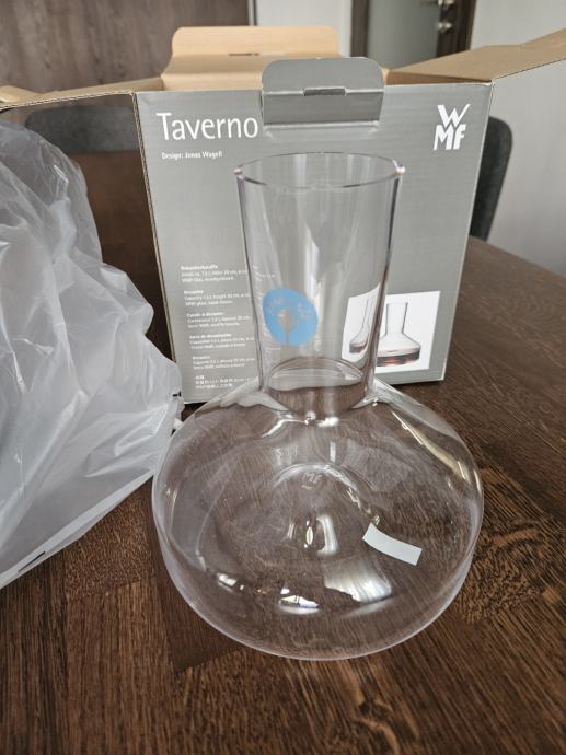 Prodajem nekoristeni dekanter za vino WMF Taverno u originalnoj ambalazi. Ručno puhano staklo, volumen 1.5 l, visina 20 cm, promjer 17.5 cm.