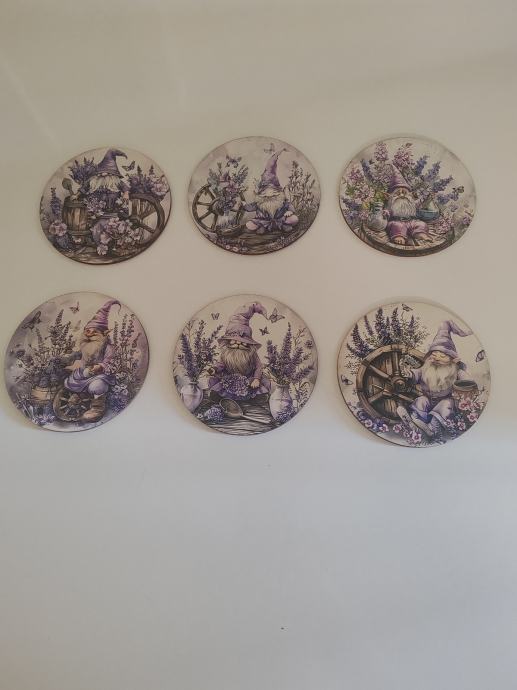 Ljubičaste boje sa motivom patuljaka. Svaki podmetač je drugačiji. (vidljivo na slikama)